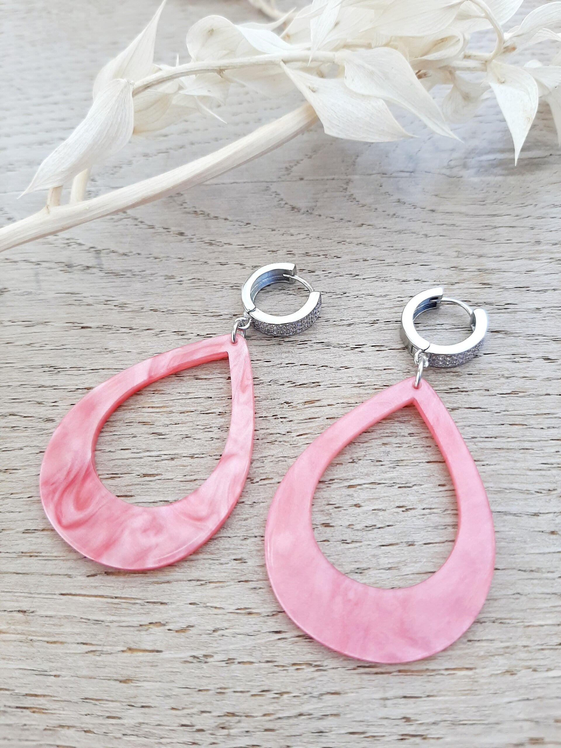 Lichtgewicht acryl hangers in roze met zironia steentjes