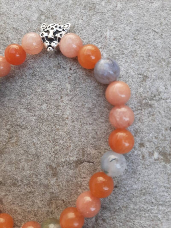 Armband met natuursteen kwarts kralen in oranje peach tinten