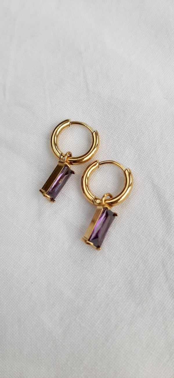 Musthave alert! Hoe leuk zijn deze gouden oorbellen met langwerpig blauw steentje! Mega trendy en daarnaast perfect te stylen met meerdere oorbellen; zo kun jij jouw ideale ear party creëren. Daarnaast kun je deze oorbellen ook leuk dragen in combinatie met meerdere sieraden met leuke steentjes. De oorbellen zijn gemaakt van stainless steel en zirkoon en hebben een afmeting van 2 cm.