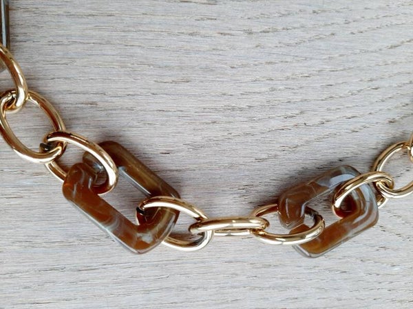 goldplated schakels met bredere tussenschakels in bruin/beige tinten