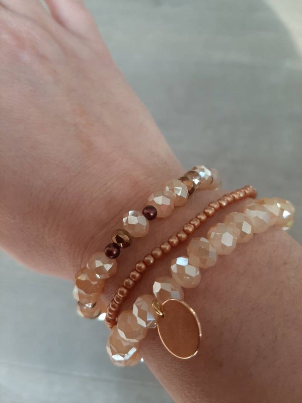 Set bestaat uit 3 armbandjes met facetkralen 6mm en fijne rocaille kraaltjes.