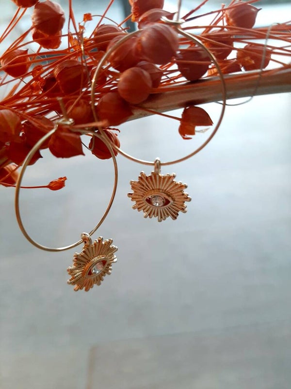 Creolen goldplated, hangertje is een zon met zikonia steentje